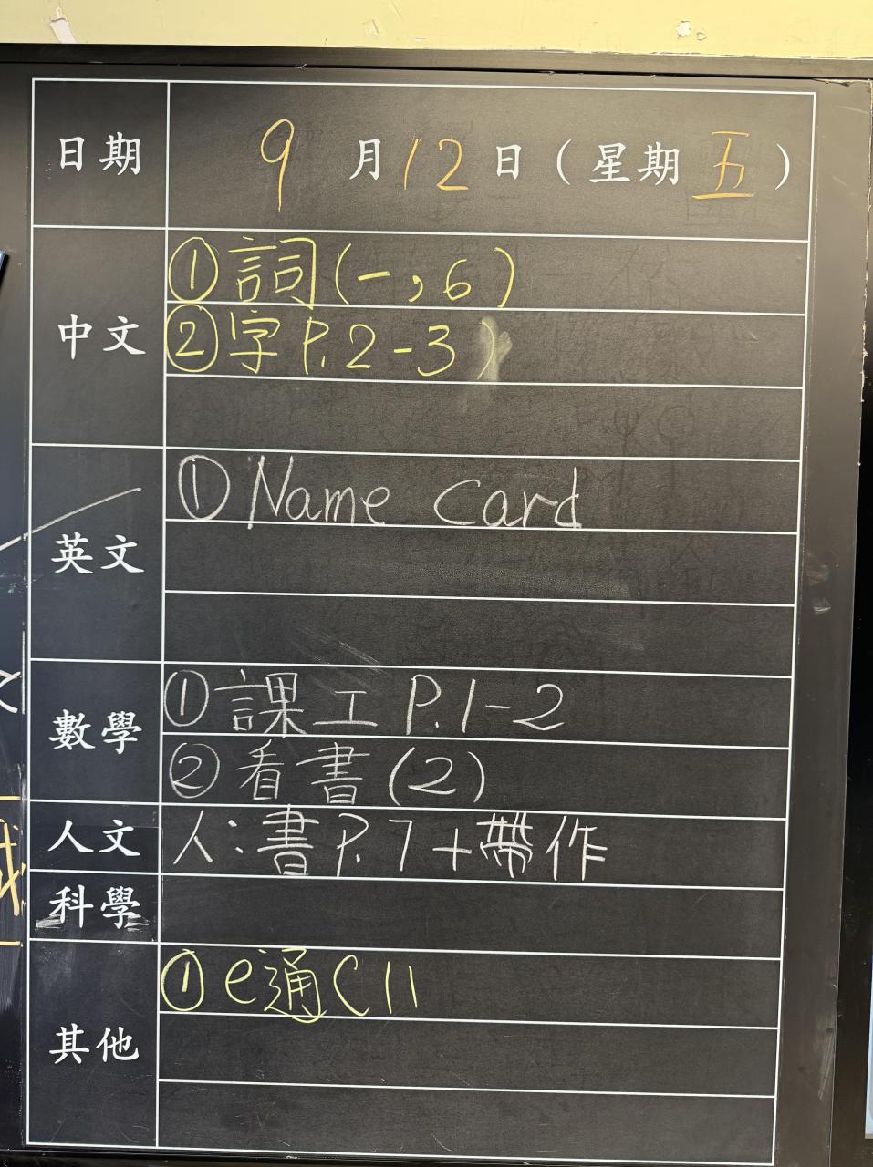 班別家課