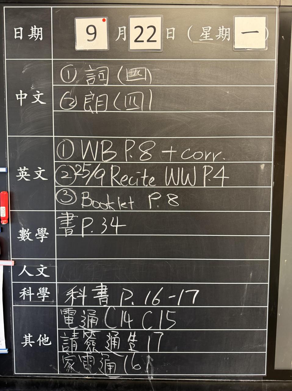 班別家課