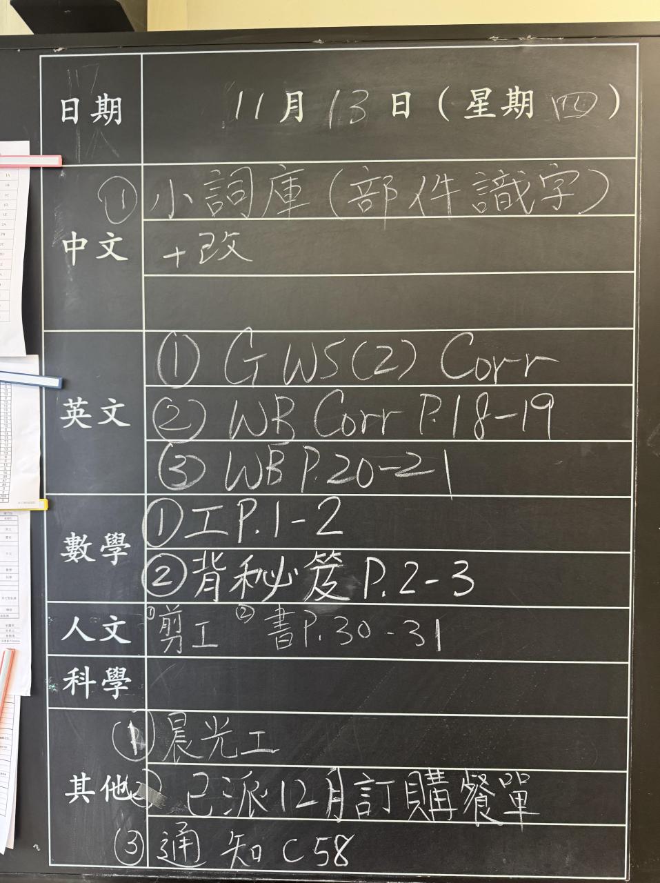 班別家課