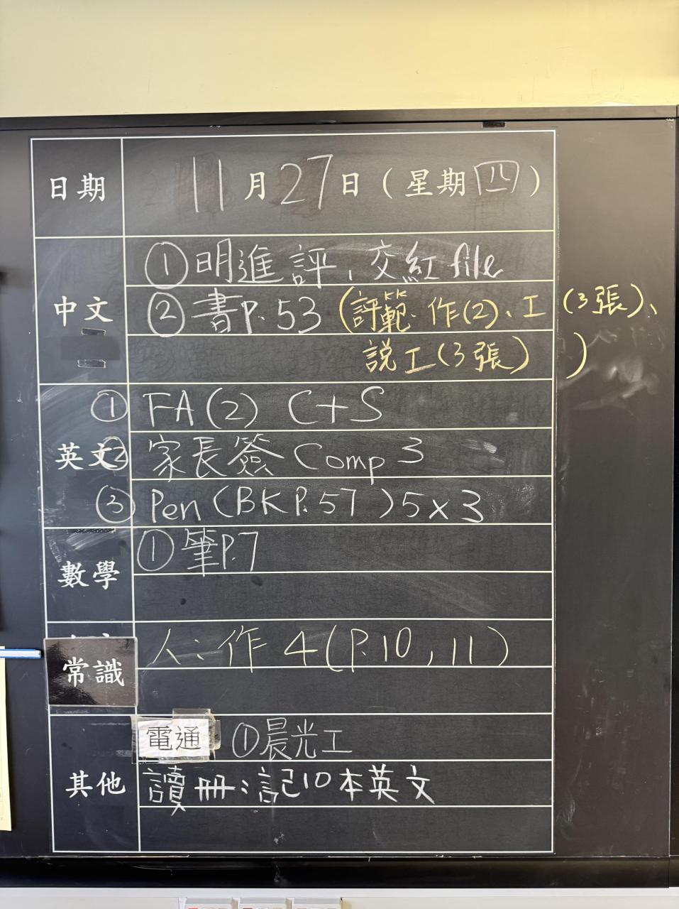 班別家課