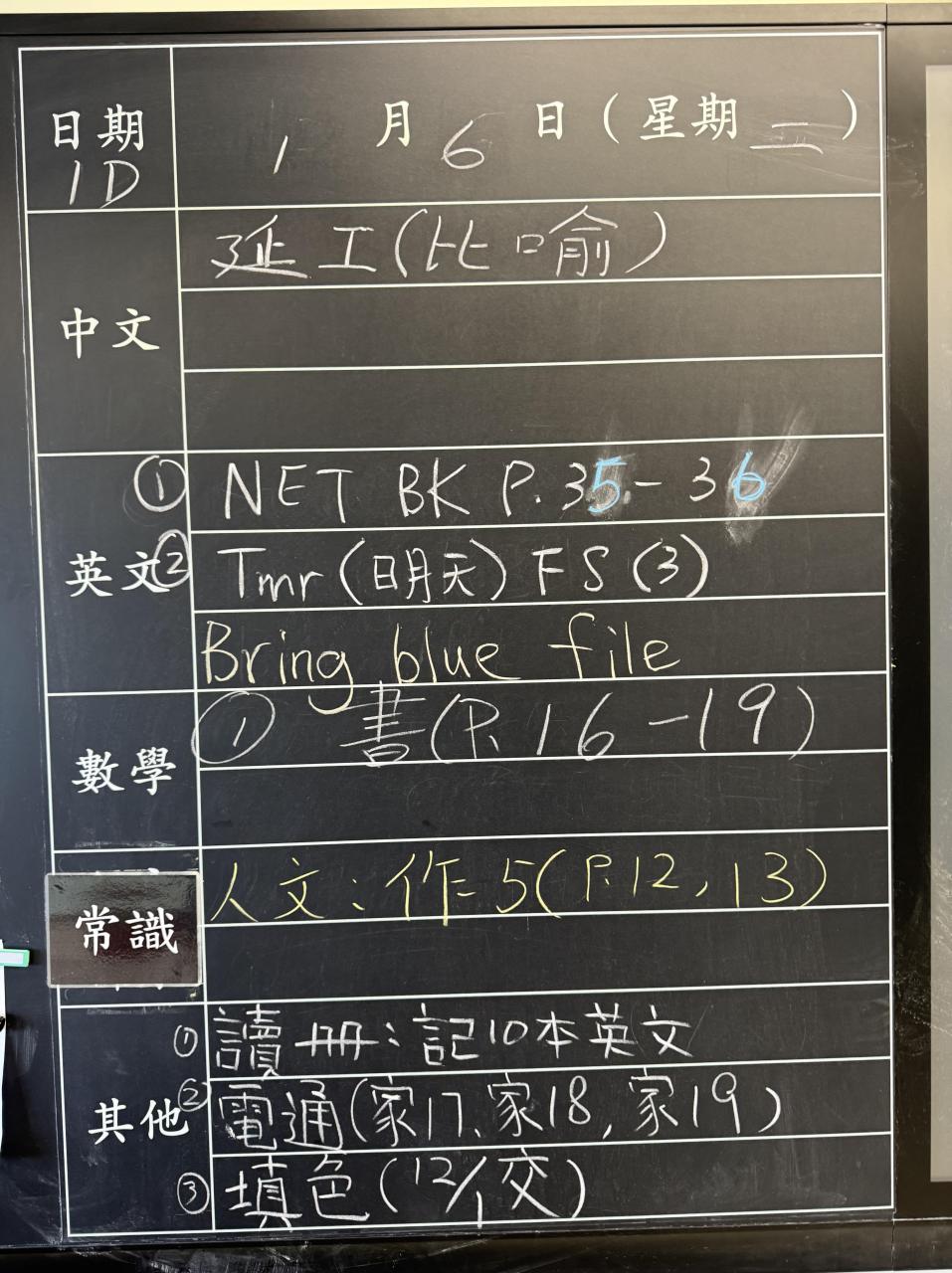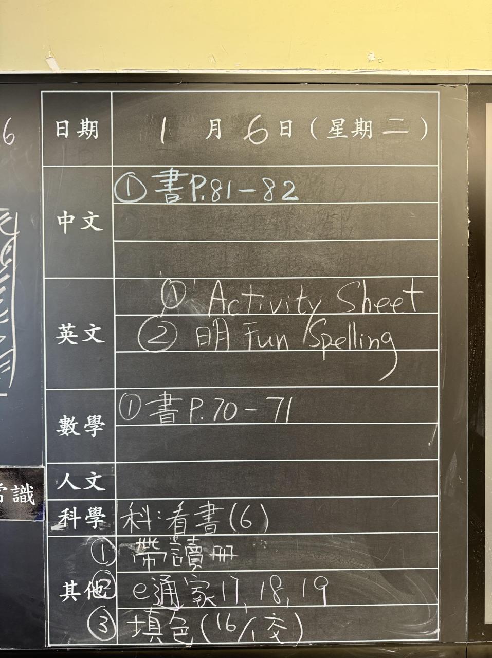 班別家課