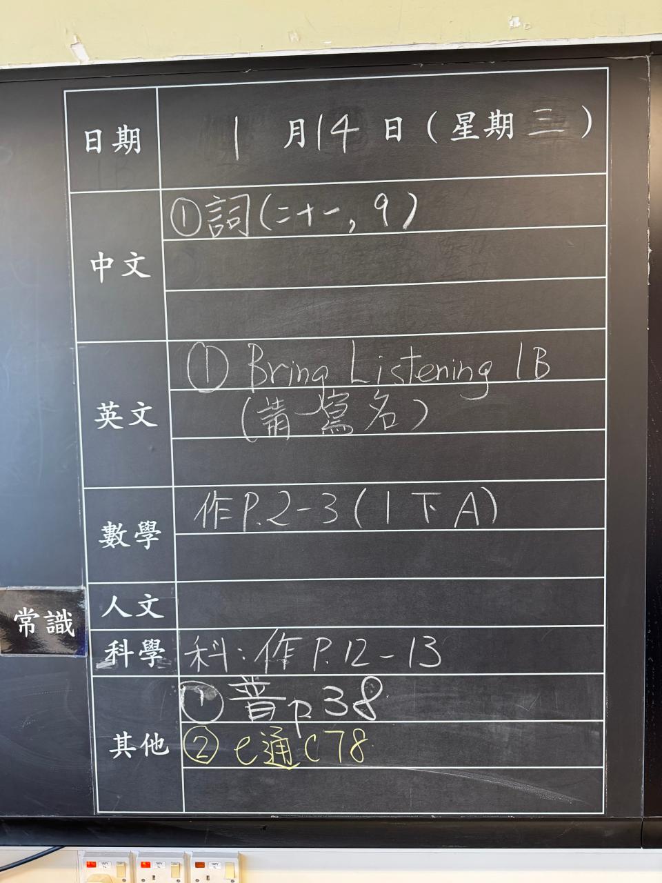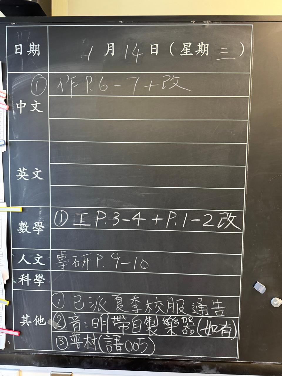 班別家課