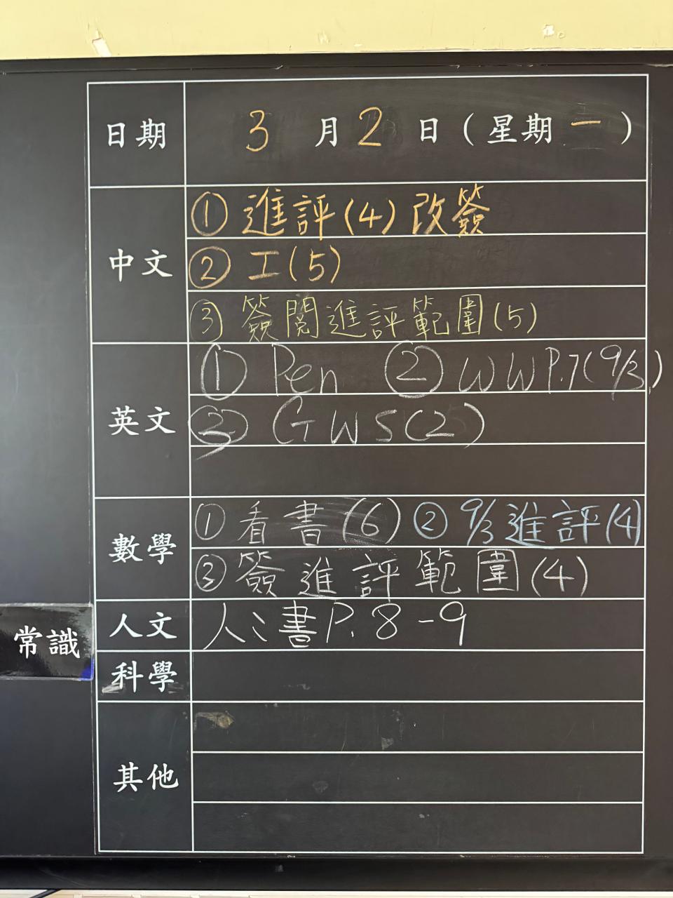 班別家課