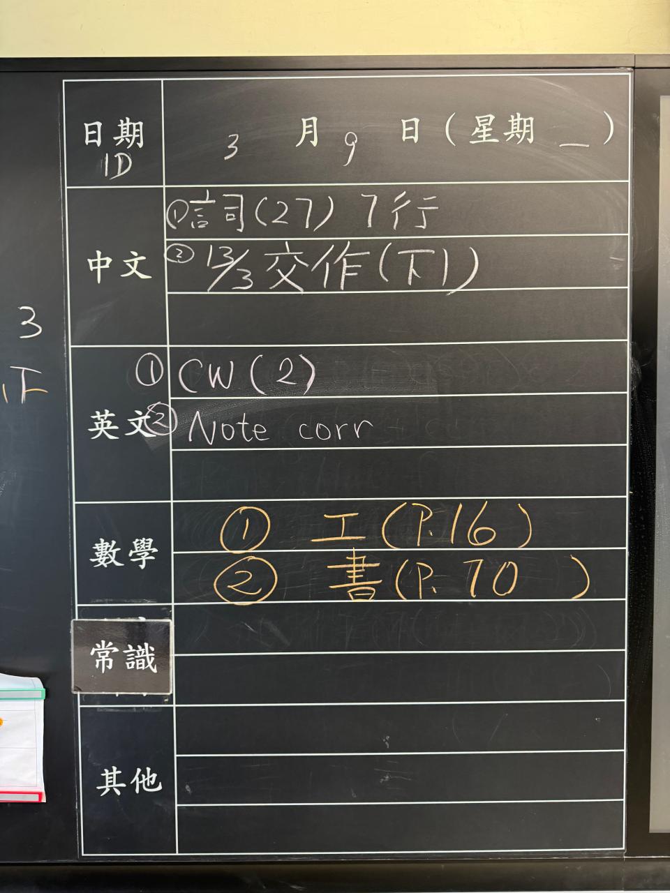 班別家課