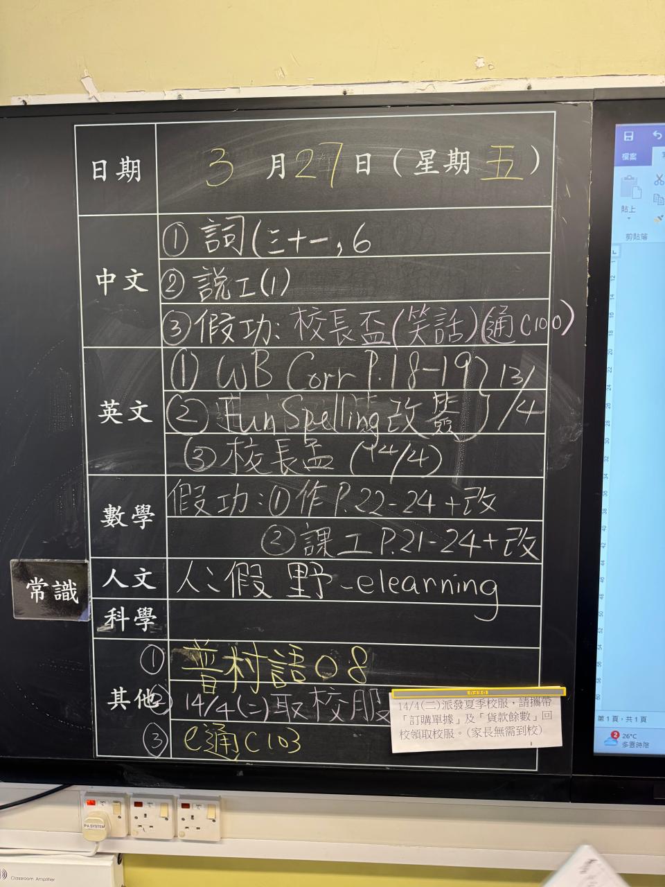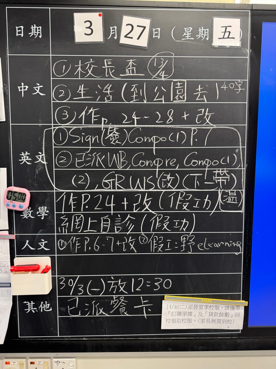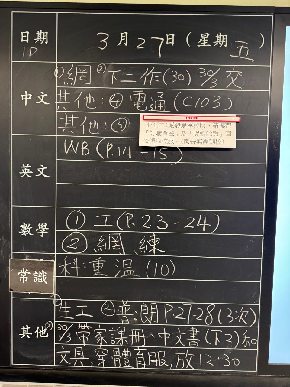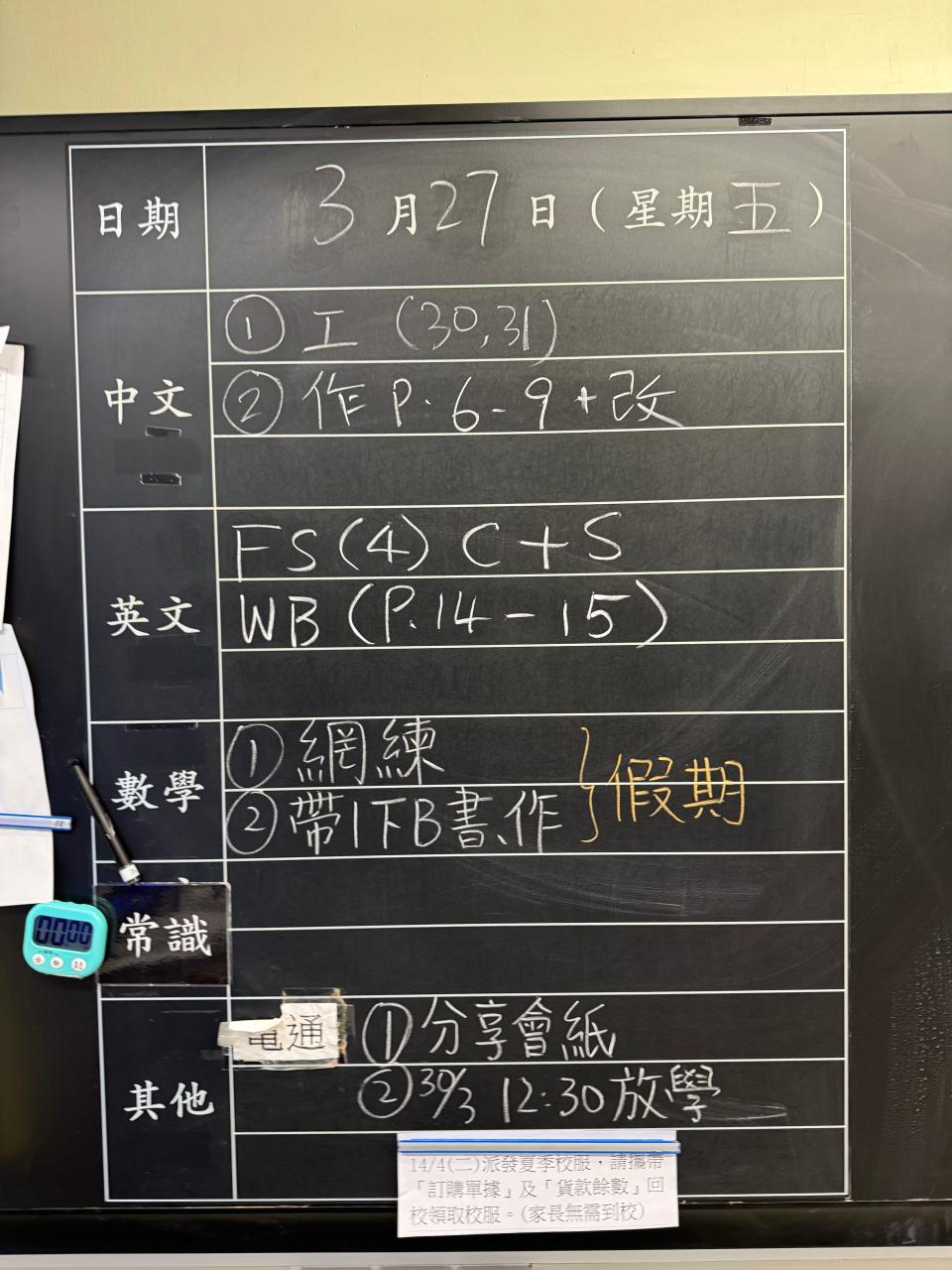 班別家課