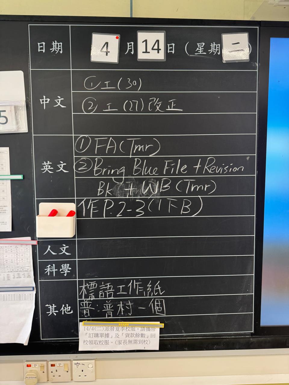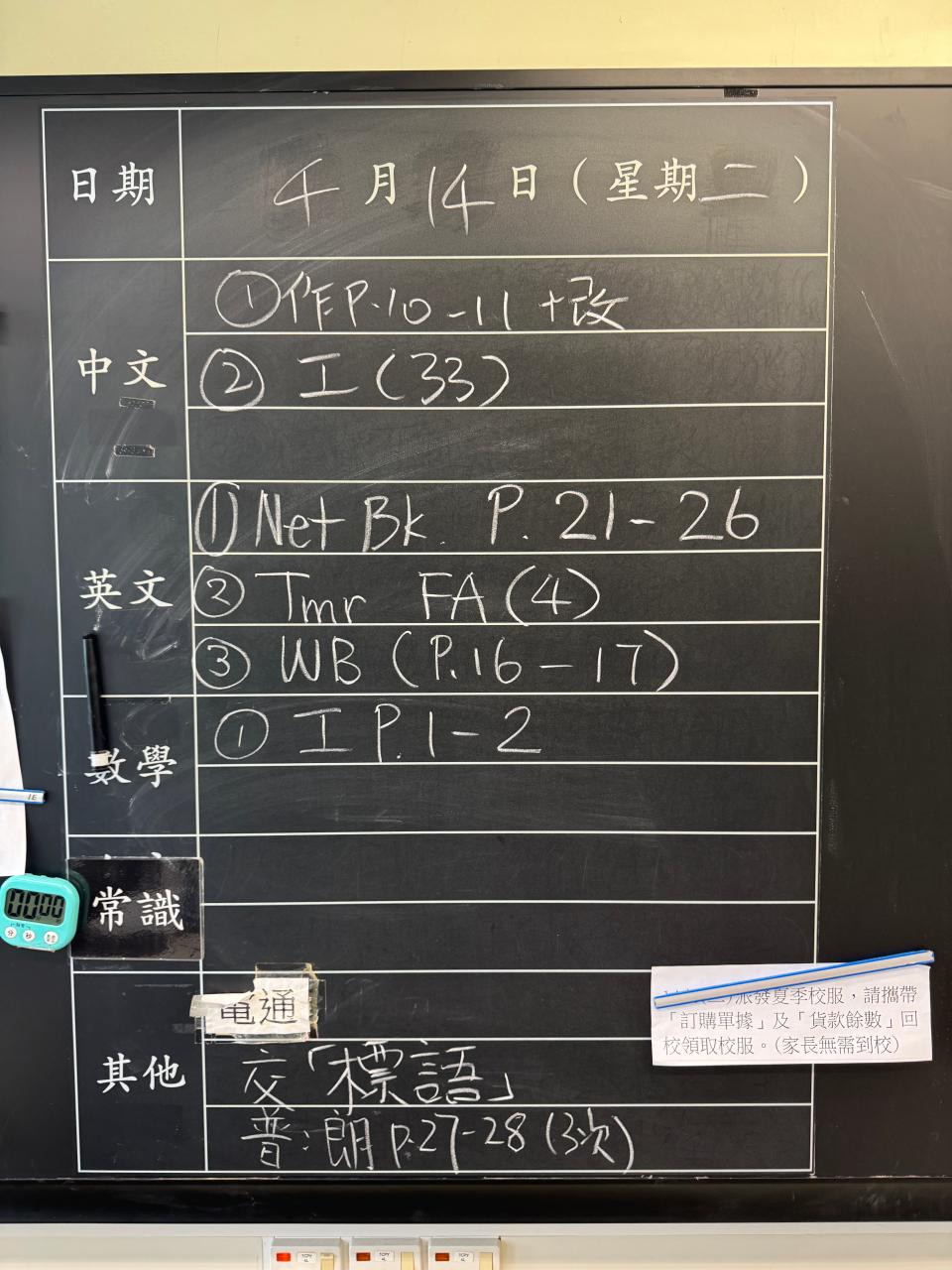 班別家課