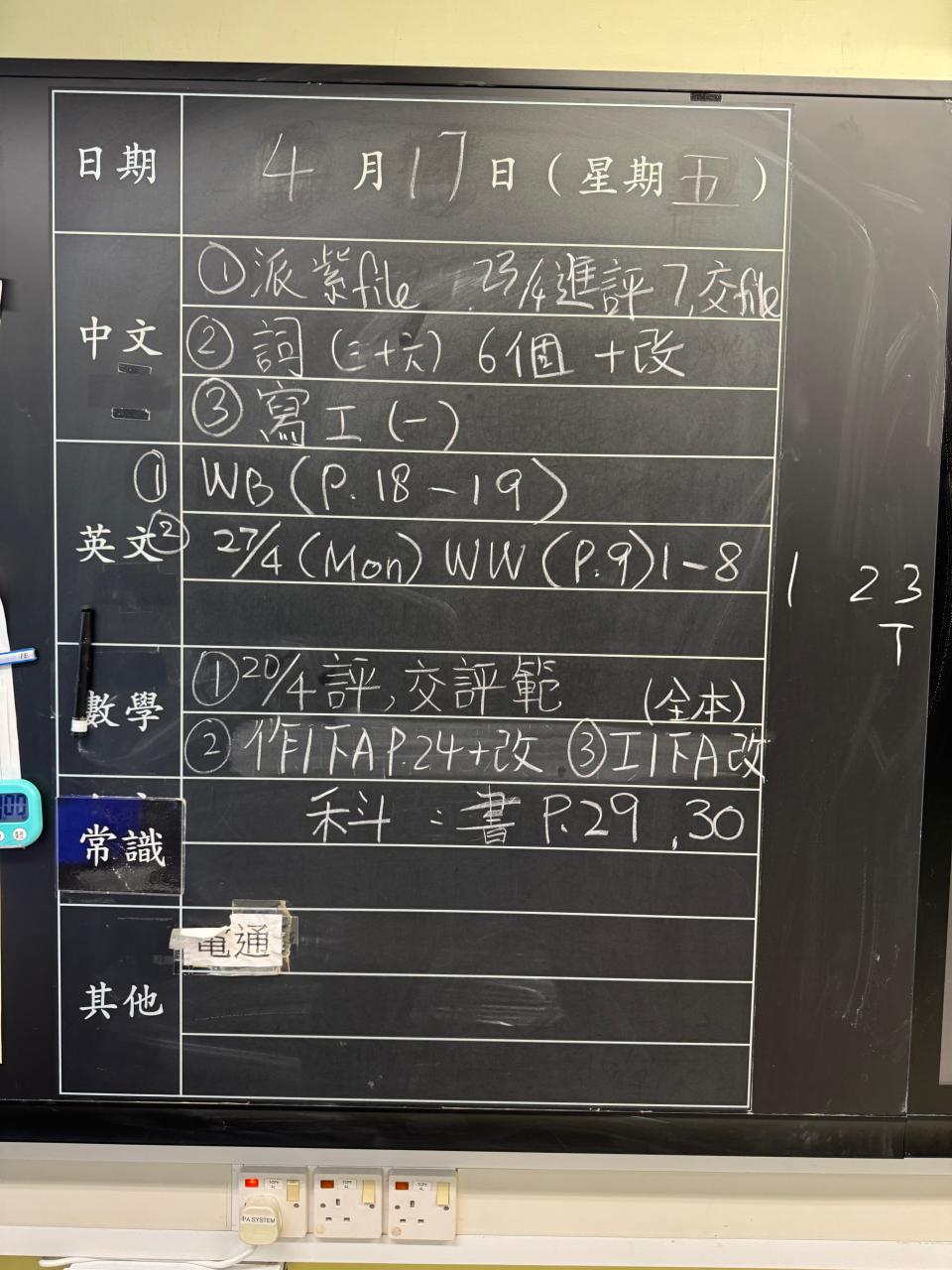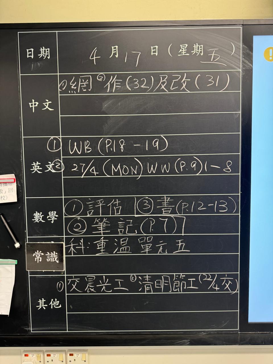 班別家課