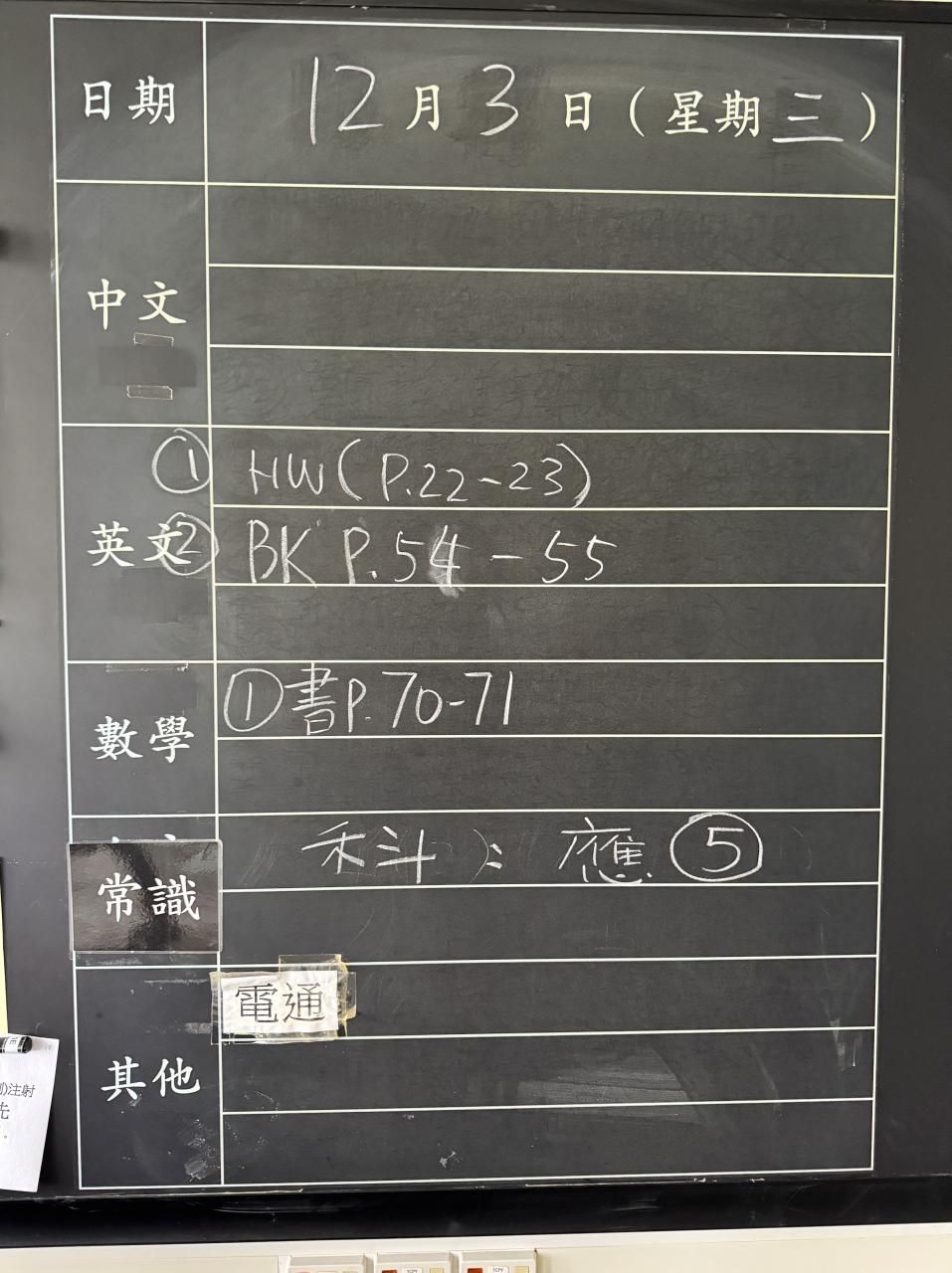 班別家課