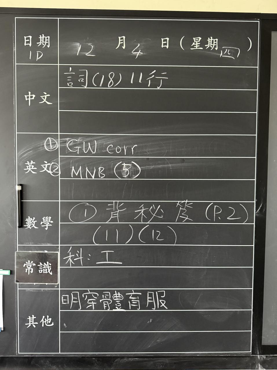 班別家課