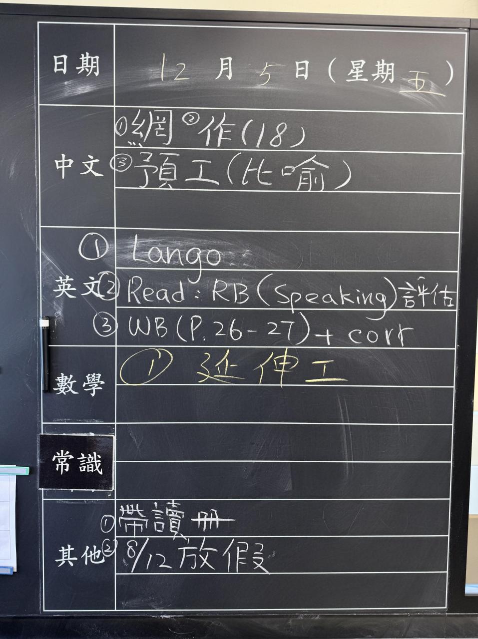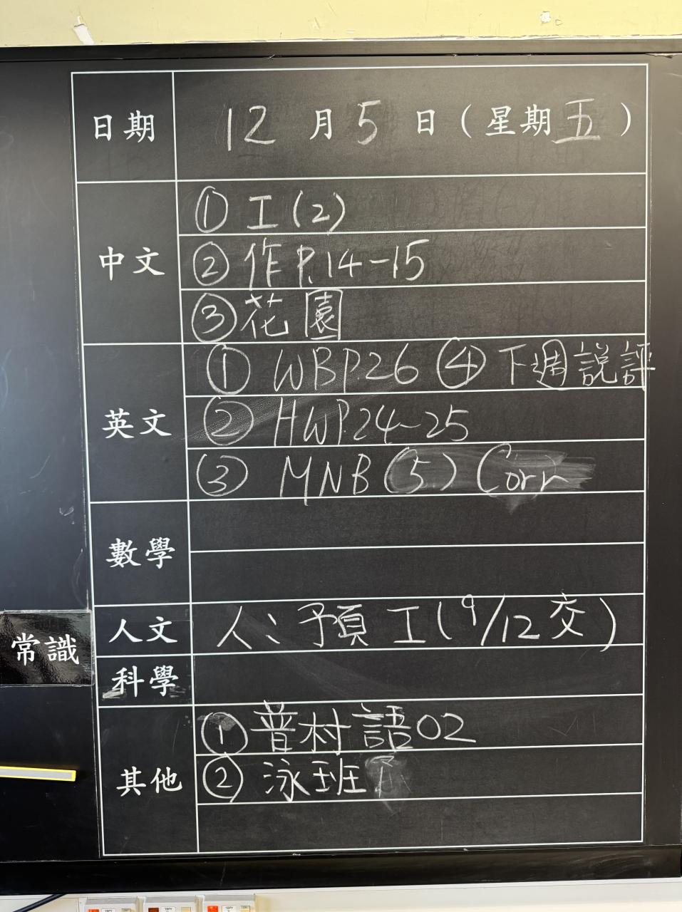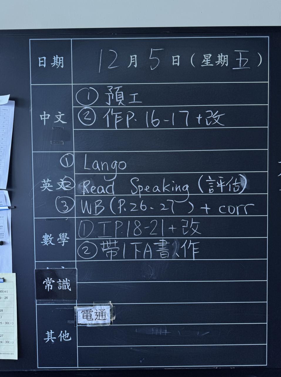 班別家課