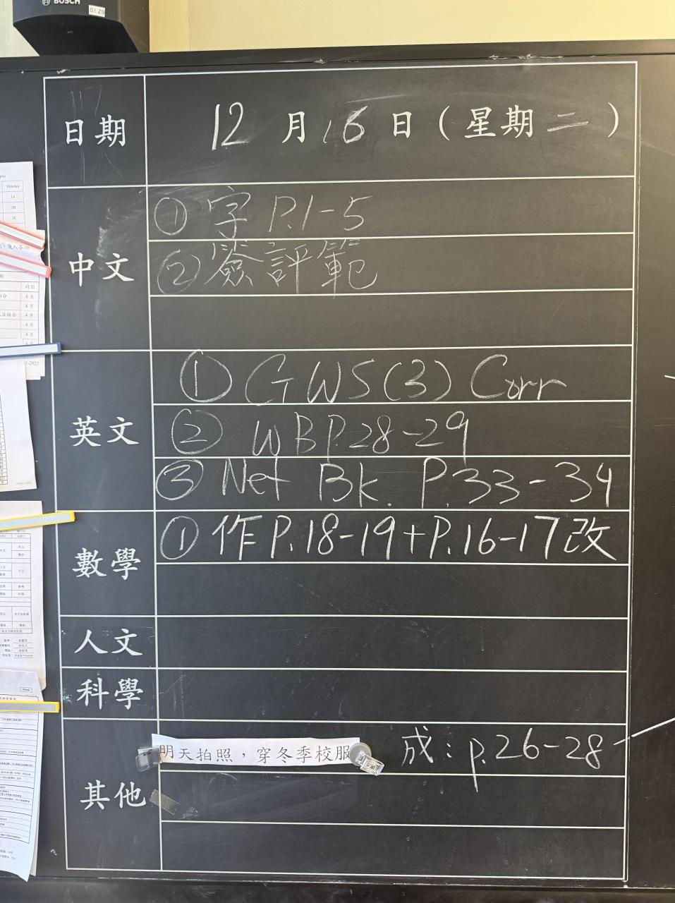 班別家課
