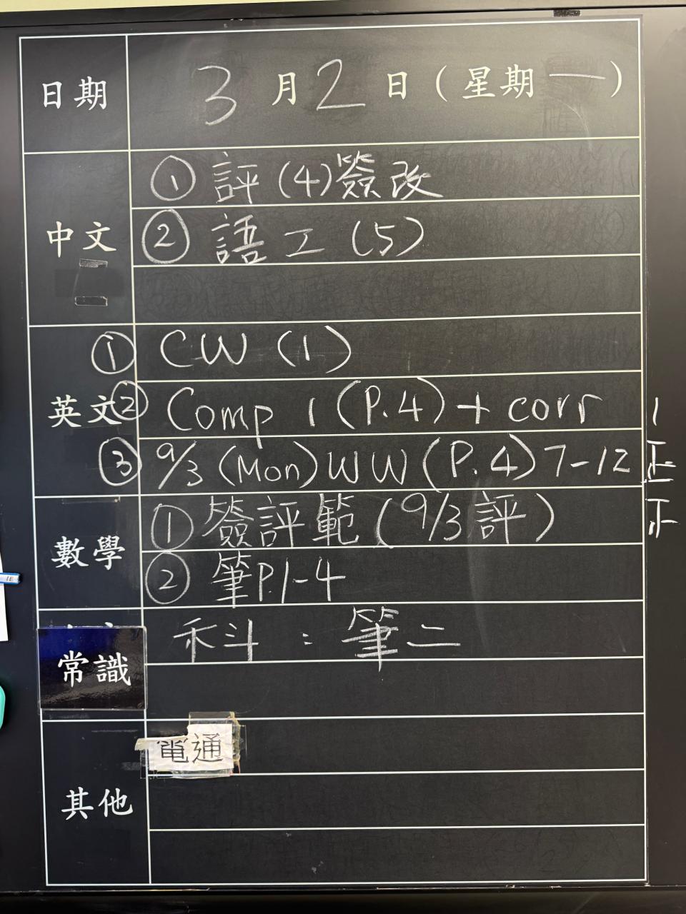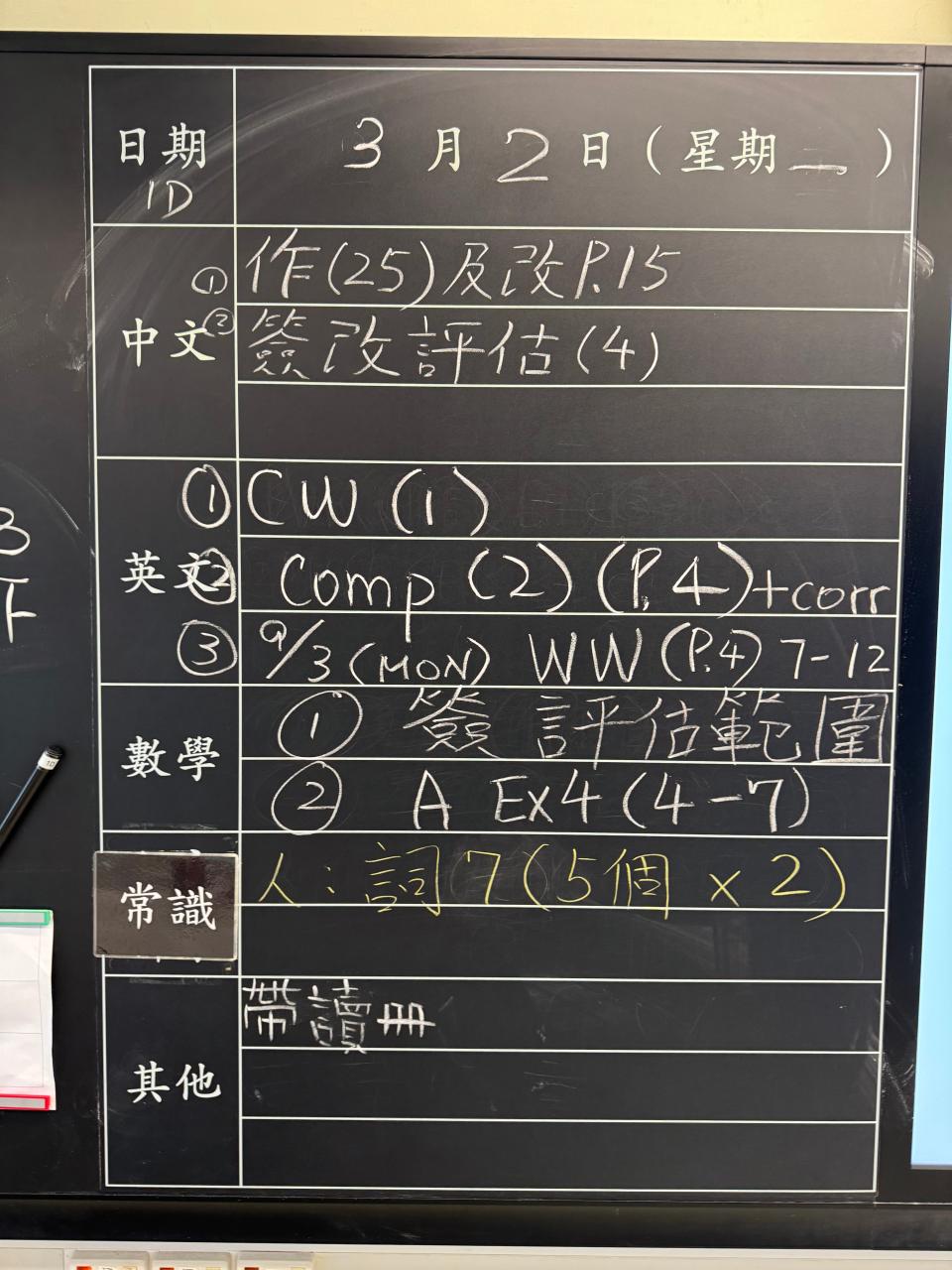 班別家課
